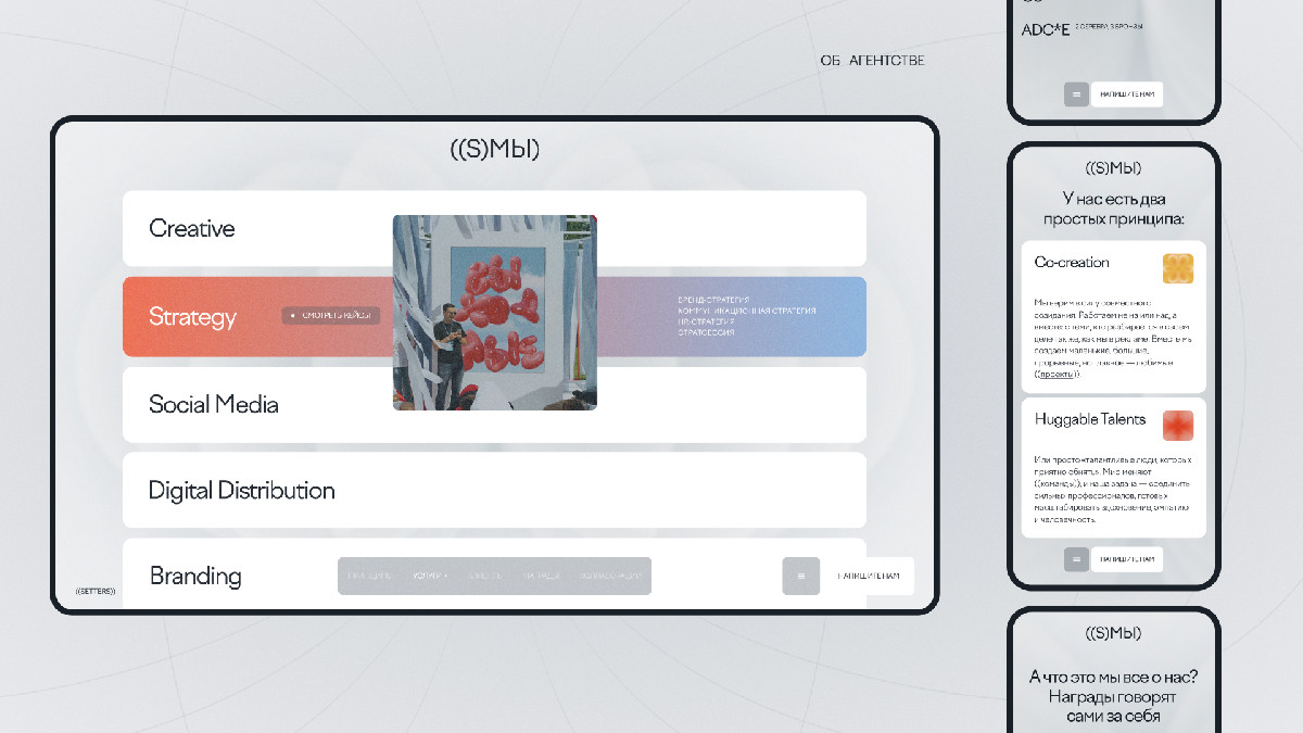 Разработали новый сайт агентства, который стал одним из ключевых носителей новой идеи и идеологии креативного агентства SETTERS.