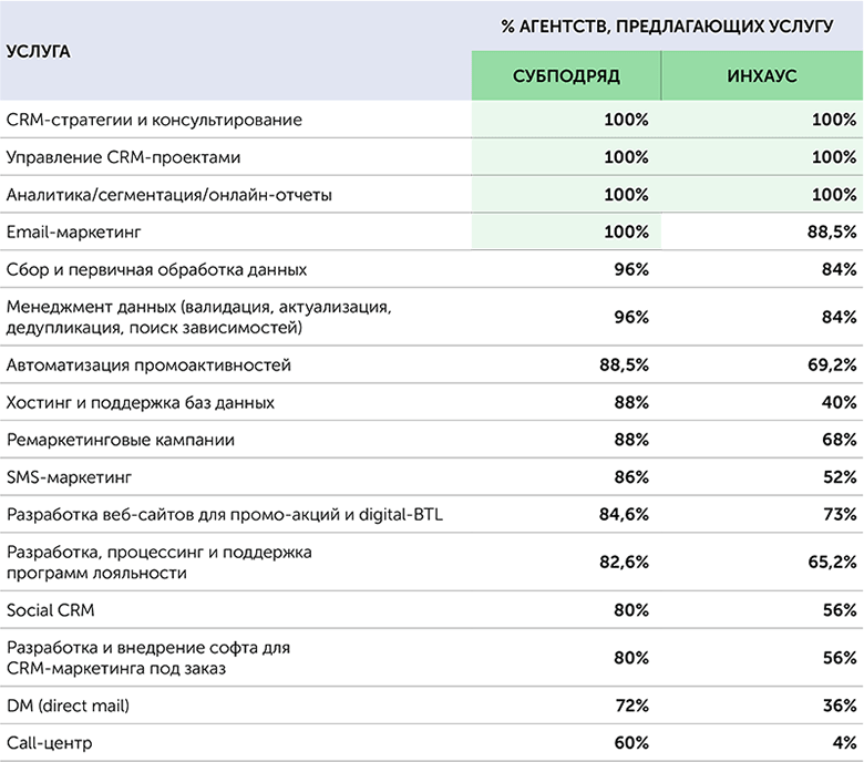 Дополнительным штрихом к картине рынка будет информация о готовности CRM-агентств работать на субподряде.