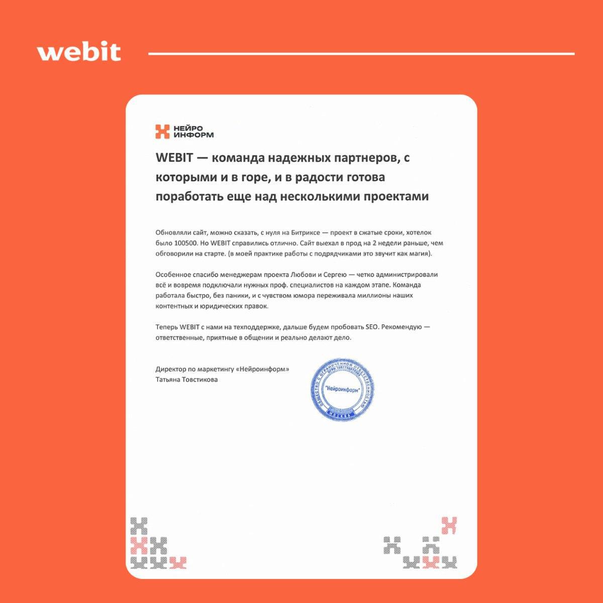 Webit выступает ориентиром для отрасли — примером того, как агентство выходит за рамки подрядной логики и становится институциональным партнером бизнеса.
