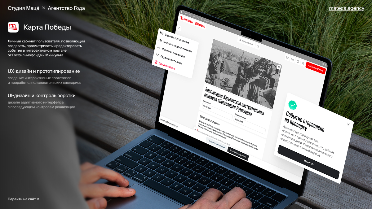- В 2025 году вместе с Министерством культуры РФ запустили федеральный спецпроект «Карта Победы». Здесь мы собрали редкие оцифрованные кинодокументы из Госфильмофонда и наложили их на интерактивную карту военных событий. Каждая точка на карте — конкретное событие с привязкой к хронике, архивным фото и таймлайну по годам. Можно посмотреть маршруты движения войск, найти конкретную дату или поделиться историей своей семьи. А для управления контентом сделали удобную админку с разделением ролей.