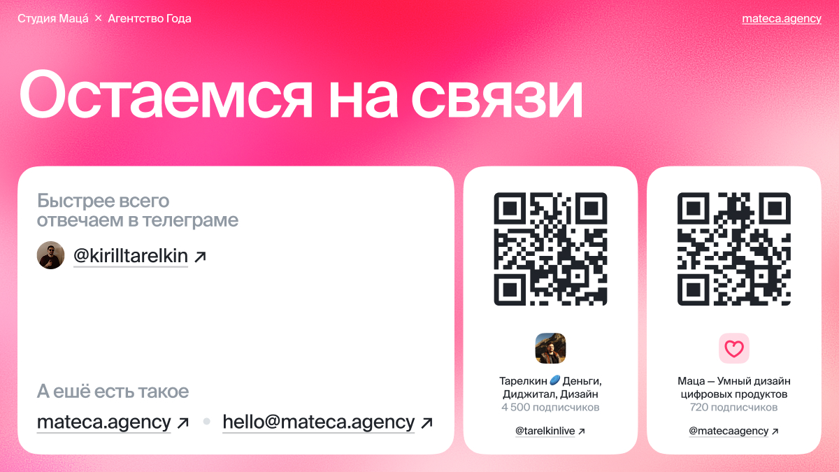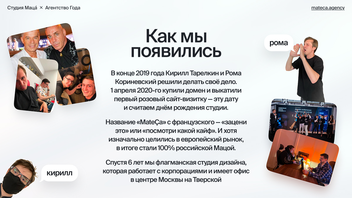 Привет! Это Кирилл Тарелкин, фаундер студии Маца́ — диджитал-продакшена из Москвы.