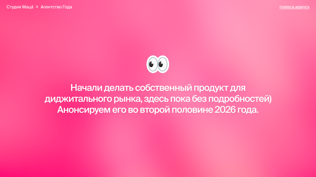 - Начали делать собственный продукт для диджитального рынка, здесь пока без подробностей) Анонсируем его во второй половине 2026 года.