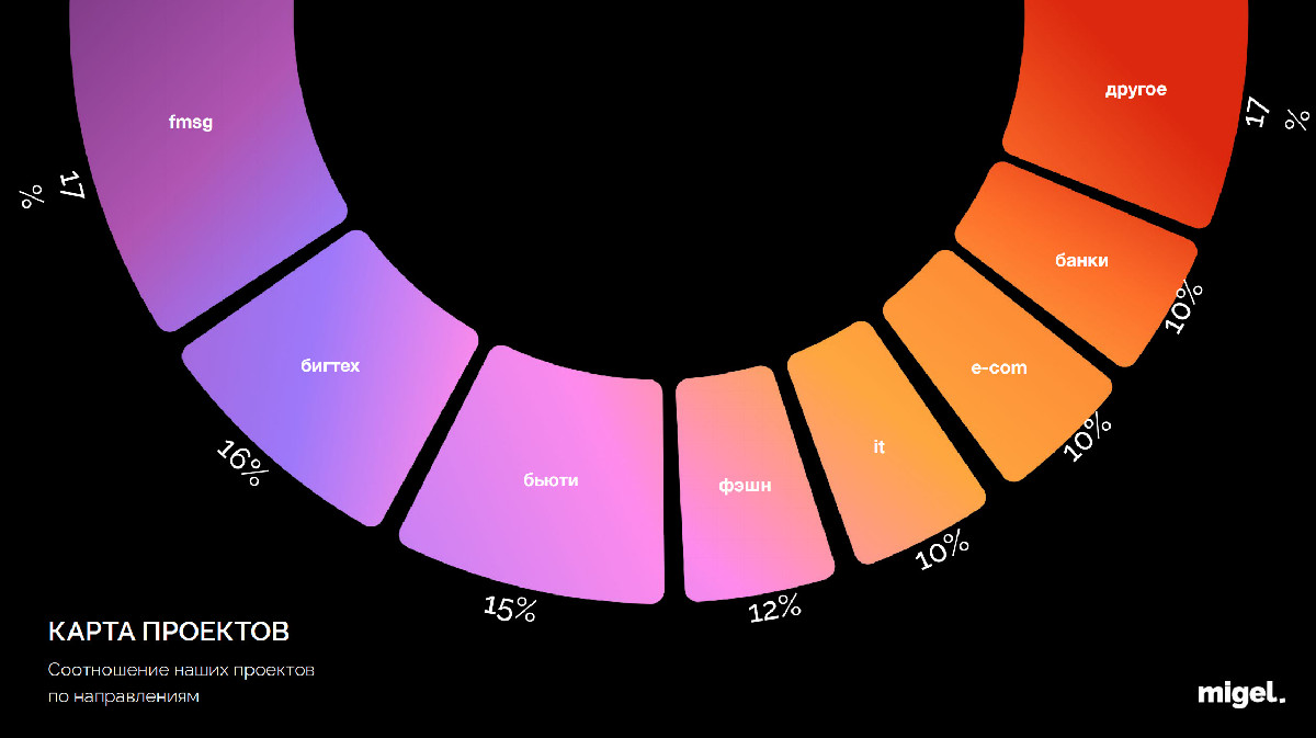 Ключевая экспертиза MIGEL сосредоточена на комплексном подходе к digital-коммуникациям — от стратегии до продакшна и масштабирования кампаний.