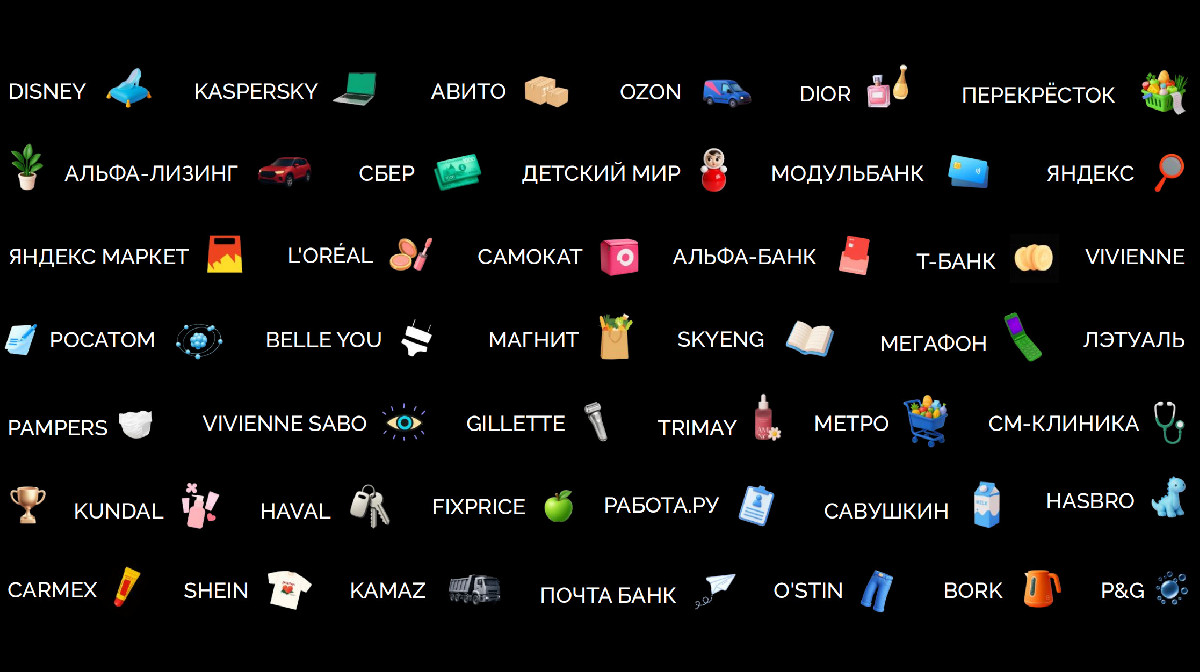 Среди наших клиентов — ведущие компании и бренды: Яндекс, Сбер, МегаФон, Ozon, Disney, L’Oréal, Dior, Альфа-Банк, FixPrice, Магнит, Skyeng, Kaspersky, Авито, Детский мир и многие другие.