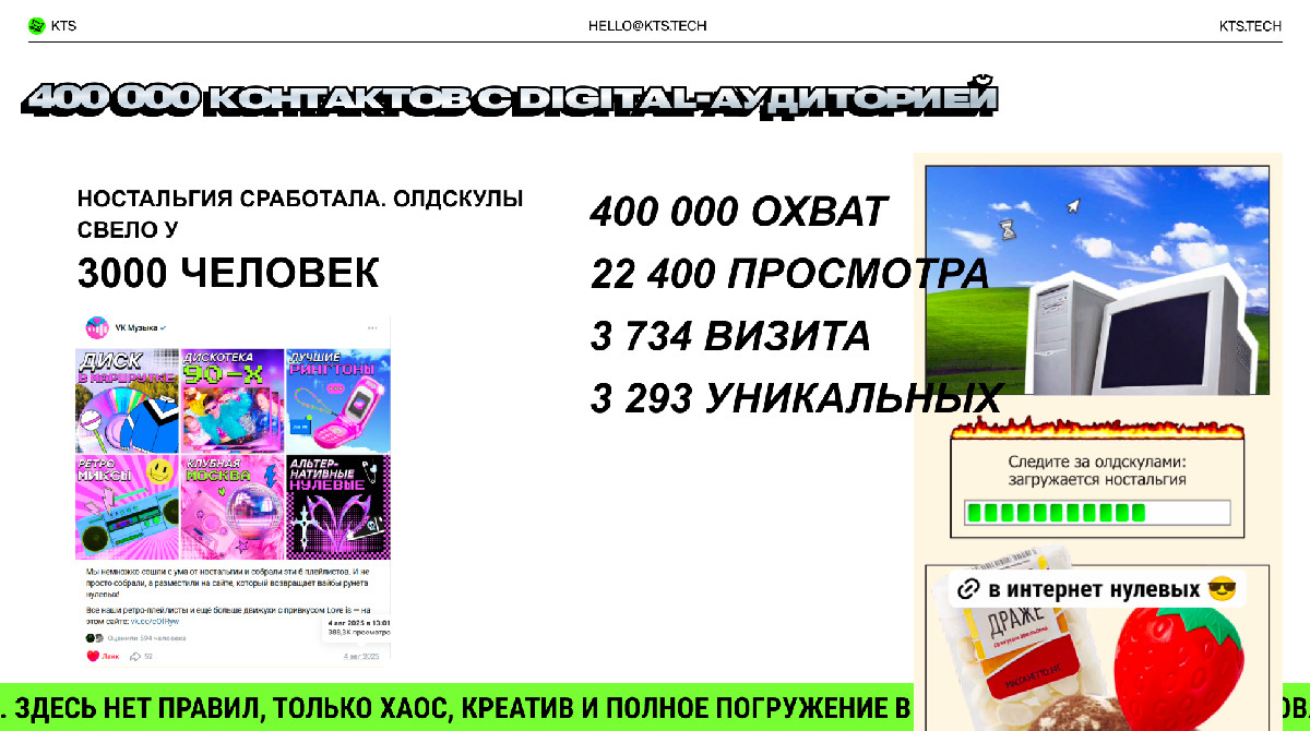 Коммуникации в digital часто выглядят одинаково. Информационный шум высокий, а органический охват без медийных бюджетов получить сложно. Чтобы выделиться, нужен не просто сайт, а культурное попадание. Мы сделали ставку на ностальгию по 2000-м — как на универсальный эмоциональный код для аудитории 25–40.