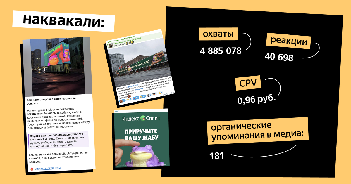 Дрессировка жаб: как за три дня создать интригу на 5 млн охвата (заказчик — Яндекс Сплит)
