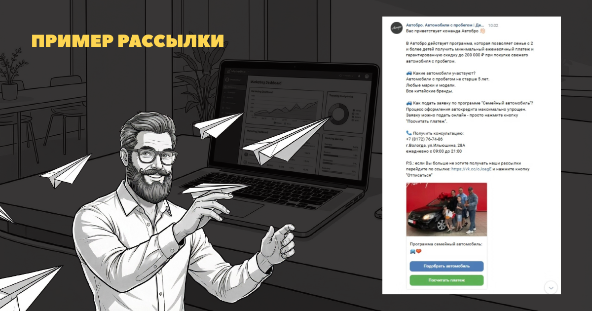 Пример письма, которые рассылались через сервис Senler от имени сообщества "Автобро".
