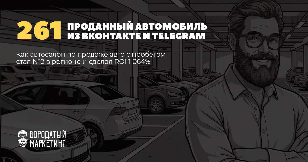 261 проданный автомобиль из ВКонтакте и Telegram. Как автосалон по продаже авто с пробегом стал №2 в регионе и сделал ROI 1 064%