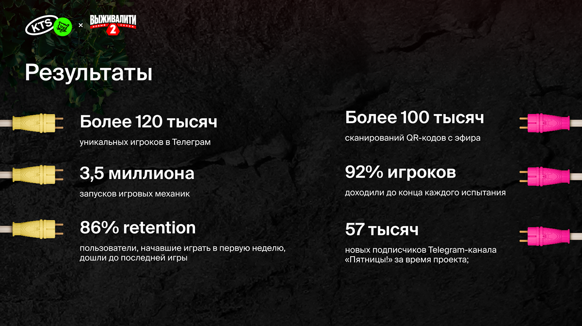 Результаты проекта подтвердили: Second Screen — это инструмент роста и вовлечения. Зрители не только запускали игру во время просмотра новых эпизодов шоу, но и регулярно возвращались к ней на протяжении всего проекта. Почти каждый, кто начал проходить испытания в первую неделю, дошел до последней игры, сохранив интерес и азарт до конца.