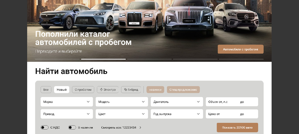 - Мобильная адаптация. Мобильная версия получила нижний таб-бар для быстрого доступа к разделам «Новые авто», «С пробегом», «Сервис» и «Профиль».