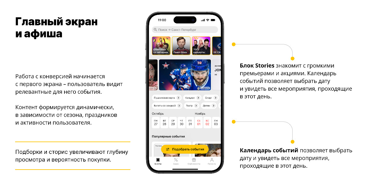 Мы постоянно обновляем приложение и внедряем новые функции, помогая заказчику оставаться лидером в сфере развлечений и предоставляя клиентам лучший опыт взаимодействия с билетным сервисом.