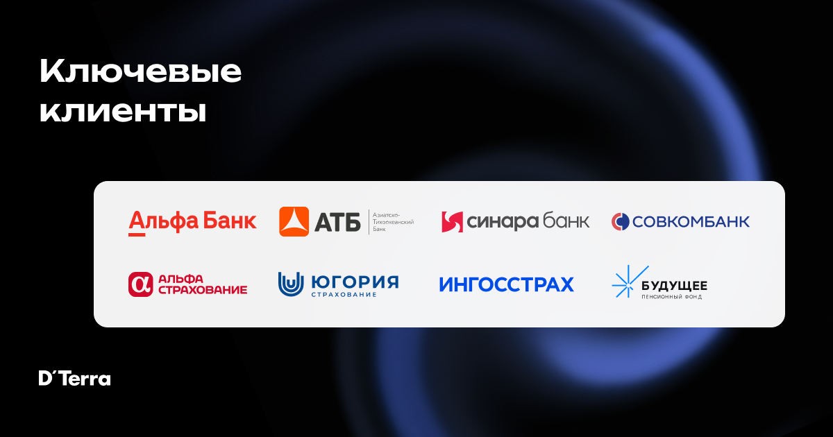 Сегодня D’Terra вышла за рамки классического агентства и сформировала группу компаний, сосредоточенную на создании цифровых продуктов для финансового рынка на базе собственных исследований.