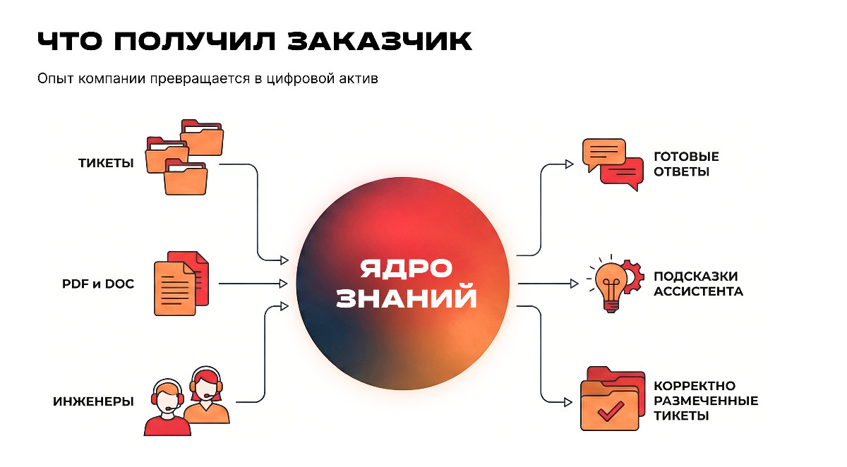 ✅ инструмент для ускоренного обучения новых сотрудников — система фактически передает им экспертизу компании в режиме реального времени;