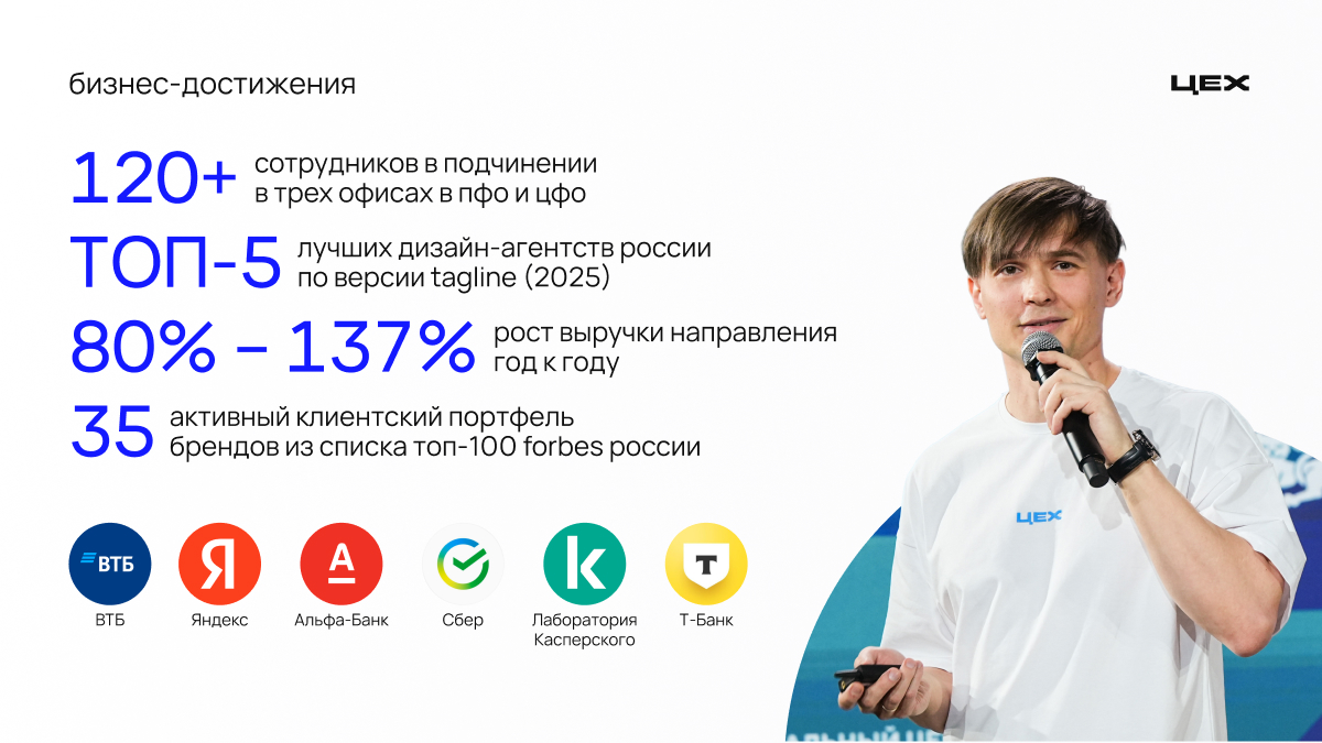 В период 2025–2026 гг. Андрей Сергунин реализовал ряд масштабных проектов и управленческих инициатив, которые значительно повлияли на развитие дизайн-направления агентства ЦЕХ и укрепили его позиции на рынке.