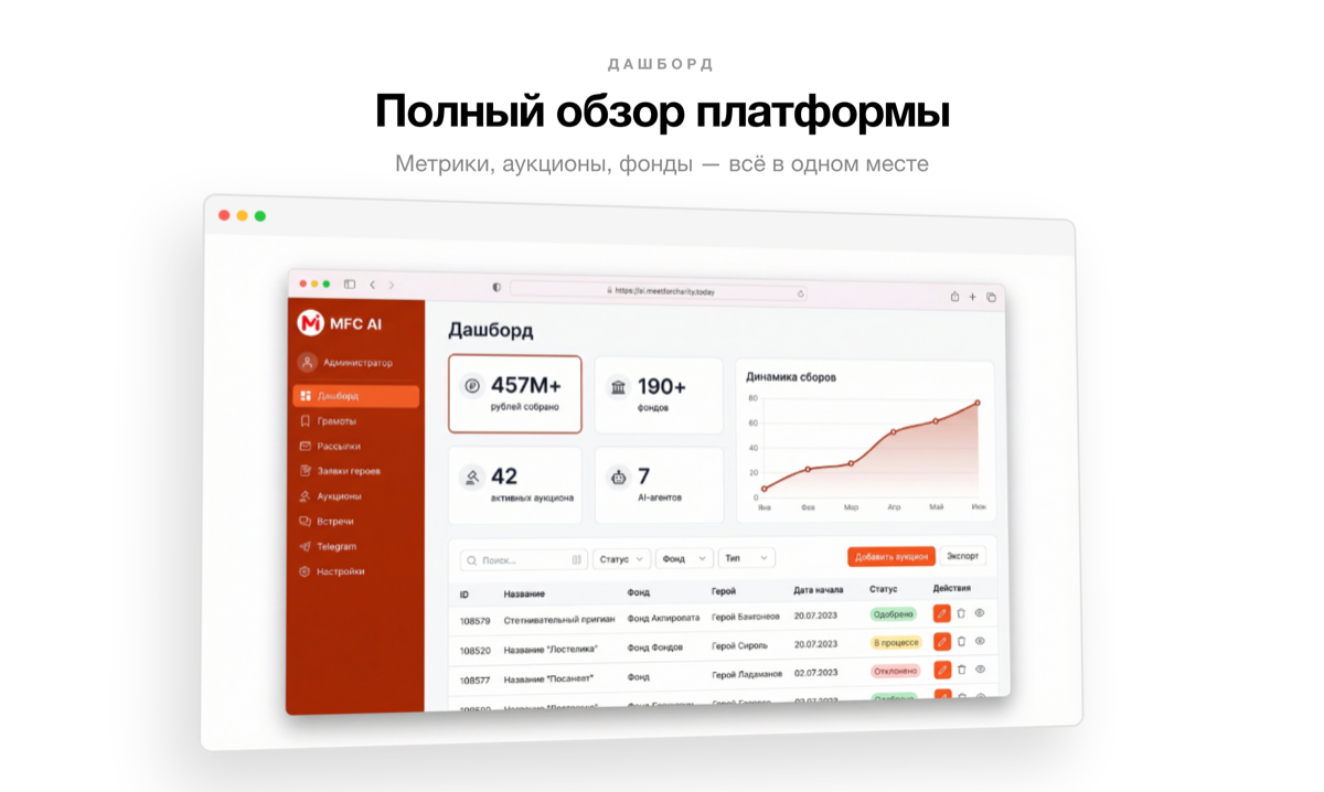 Поиск и фильтрация героев и меценатов, ведение аукционов, продвижение самой платформы, ведение отчетности, коллаборации с другими благотворительными фондами — раньше над этим работало 12 человек
