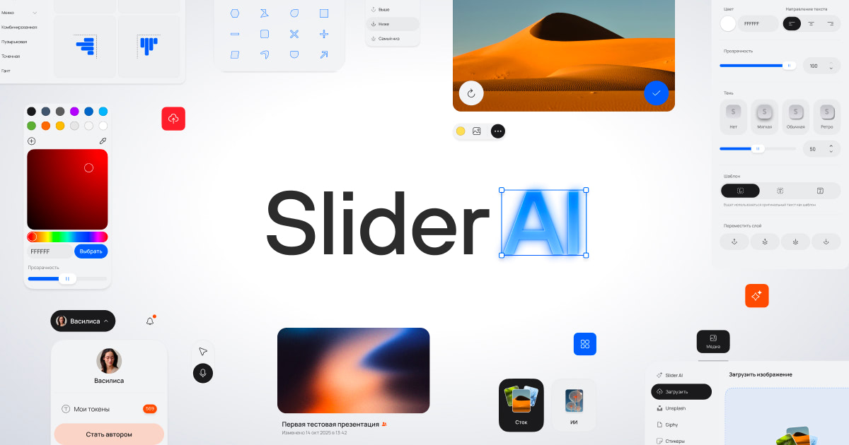 Slider Ai — российский сервис для создания презентаций с помощью голосового управления, ИИ, шаблонов и аналитики. В 2021 году Slider Ai был запущен как перспективный тюменский стартап — и с тех пор вырос до 1 млн пользователей, резидентства Сколково и постоянных упоминаний в СМИ. При этом сервисом пользуются как самостоятельные маркетологи, дизайнеры, директора — так и enterprise-компании.