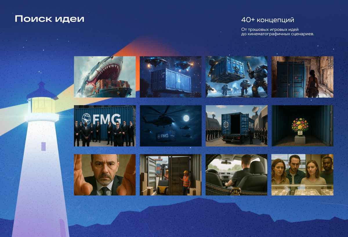Прошли через 40+ концепций: от почти трэшовых игровых идей до кинематографичных сценариев с длинными пролетами камеры.