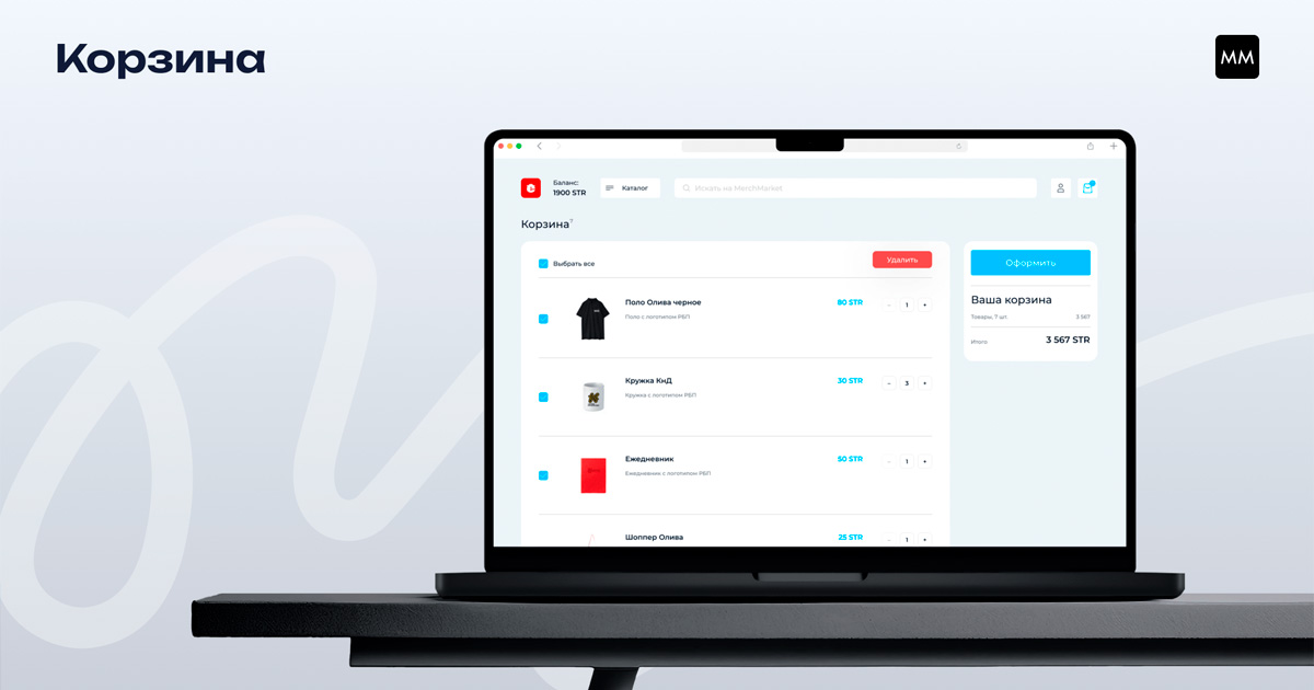 Собственно задача, с которой к нам обратился заказчик: интегрировать Мерч Маркет в компанию и сохранить все механики и начисления, которые уже были наработаны.