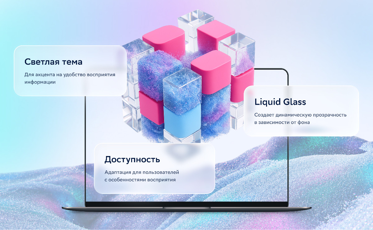 В основу визуальной концепции лег один из главных трендов 2025 года — Liquid Glass. Эффект динамической прозрачности создает ощущение глубины и делает интерфейс более объемным.