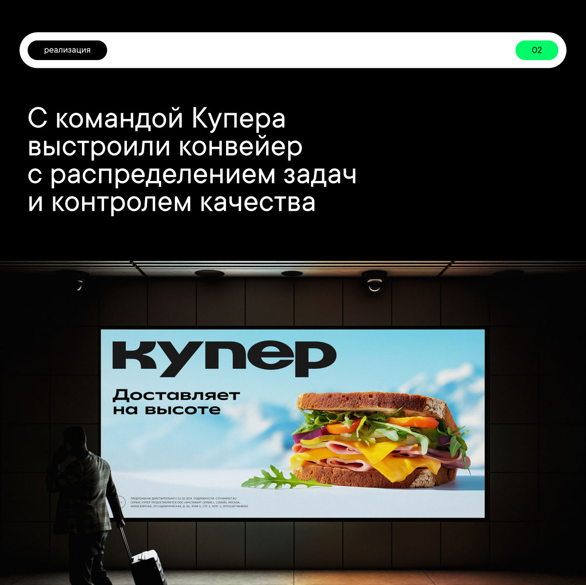 Вместо классической модели «запрос → исполнение» мы вместе с командой Купера создали непрерывный конвейер, где каждая задача распределялась к нужному специалисту и проходила чёткий контроль качества.