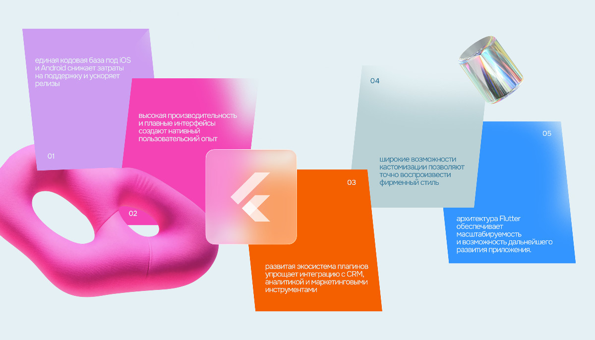 Для реализации был выбран Flutter — современный фреймворк, оптимальный для кроссплатформенных приложений. Решение продиктовано сочетанием высокой производительности, гибкости и скорости разработки.