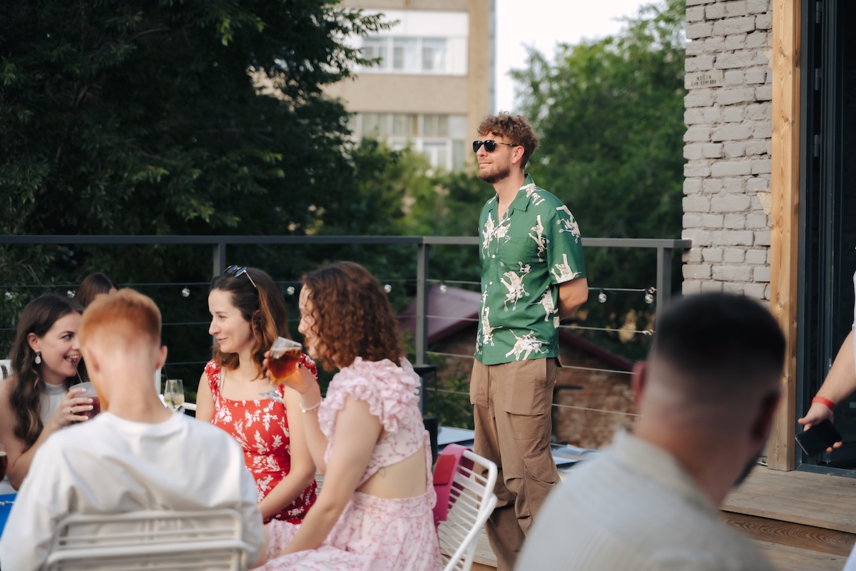 На летнем корпоративе собрали всю команду на открытой крыше бара в центре города. Большой частью корпоратива стала бизнес-игра, где основатели — Денис Ломов и Юра Макаров — выступили заказчиками, а командам пришлось выйти из своих привычных ролей. Итоговыми артефактами стали «сайты» логистической компании и дино-парка из конструктора, которые презентовали всему коллективу, а Денис и Юра оценивали результат.