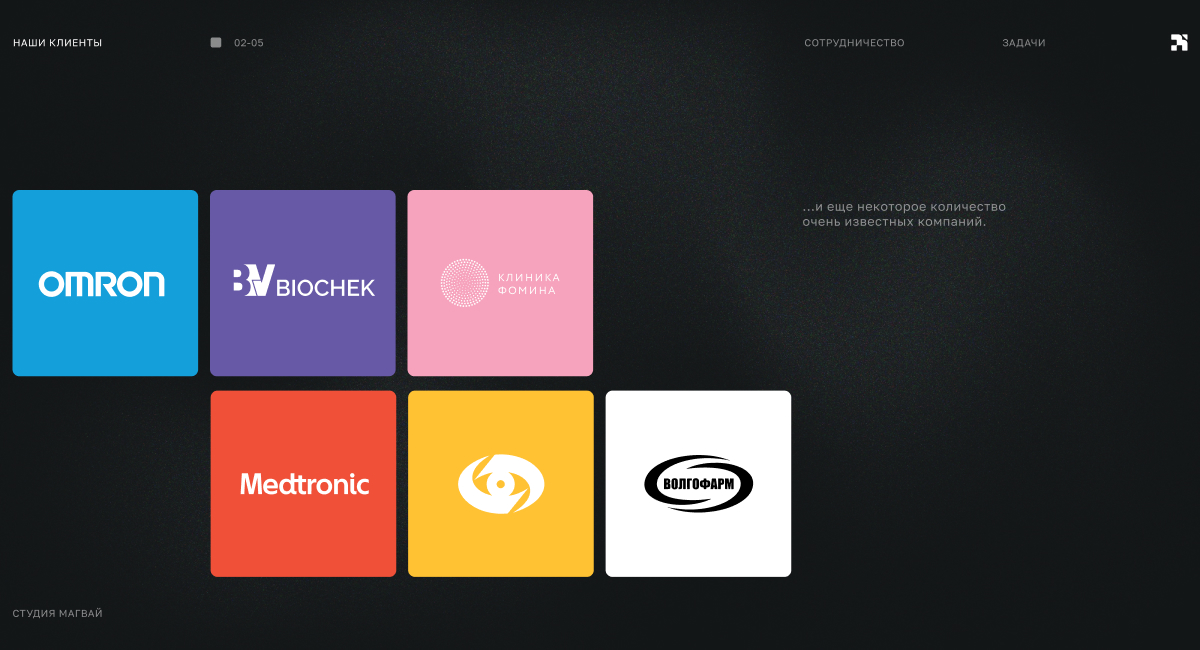 За эти годы Магвай прошел путь от небольшой региональной команды до агентства, которое заняло свое место среди сильнейших дизайн-команд страны. Сегодня нам доверяют задачи крупные игроки российского и международного рынка, а наша экспертиза выросла не только в масштабе, но и в глубине.