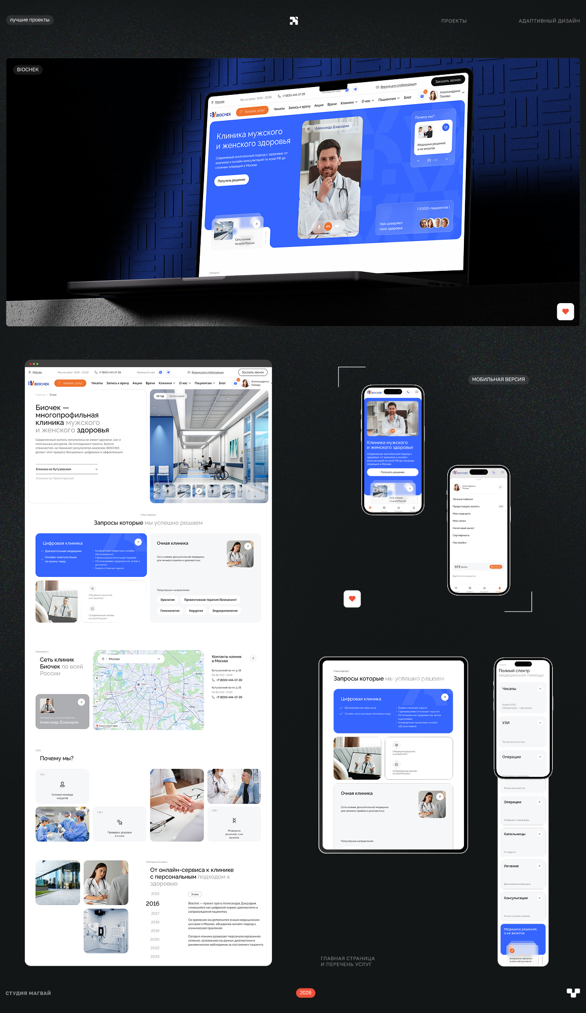 Наша медицинская экспертиза не возникла случайно и не была результатом ситуативного выбора ниши. Она формировалась органично — на протяжении последних десяти лет к нам приходили клиенты, которым был нужен не просто «сайт для клиники», а качественный симбиоз современного визуального языка, продуманного пользовательского опыта и сильной технической реализации.