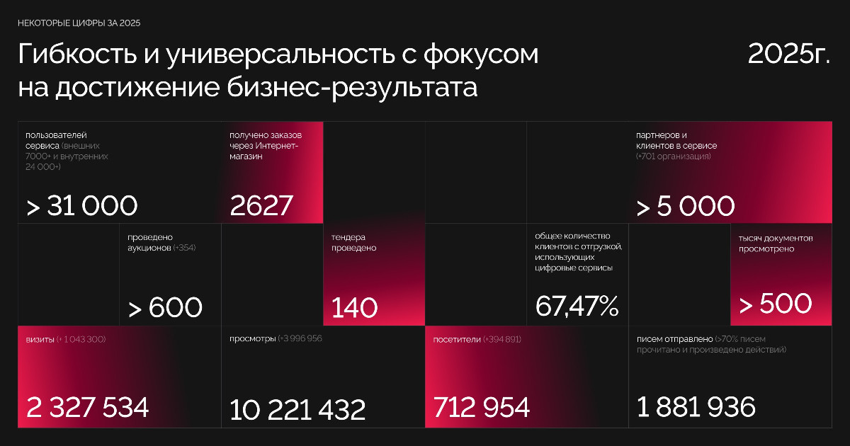 ОМК продемонстрировала не просто готовность к цифровизации, а стала примером того, как стратегически решить задачу создания целостной экосистемы. Благодаря сильной внутренней аналитике, открытости к партнерству и готовности масштабировать проект от «Кабинета клиента» до 30+ интегрированных сервисов. Полученные результаты показывают, что ОМК уже сформировала зрелый подход к цифровым решениям и не боится цифровой трансформации.