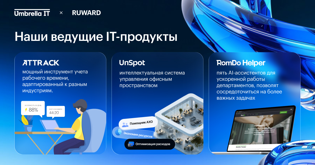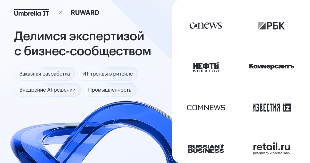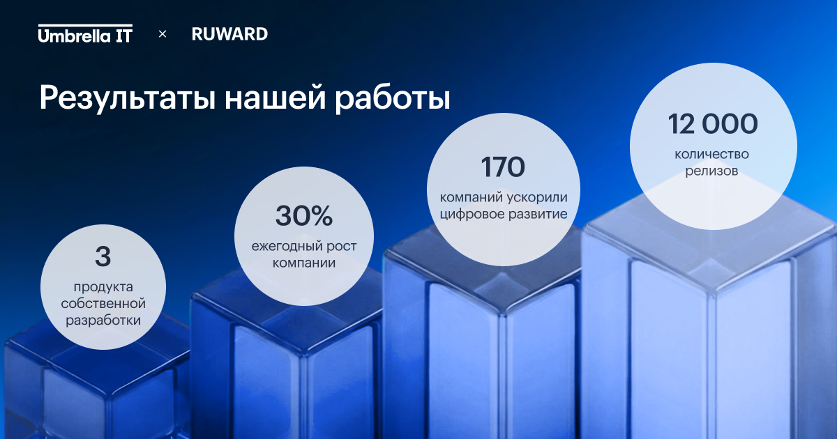 Мы Umbrella IT — компания с 16-летним опытом, ускоряющая цифровое развитие бизнеса и создающая инновационные IT-решения. Помогаем нашим клиентам внедрять технологические новшества, а результаты нашей работы неизменно получают признание на крупнейших российских конкурсах.
