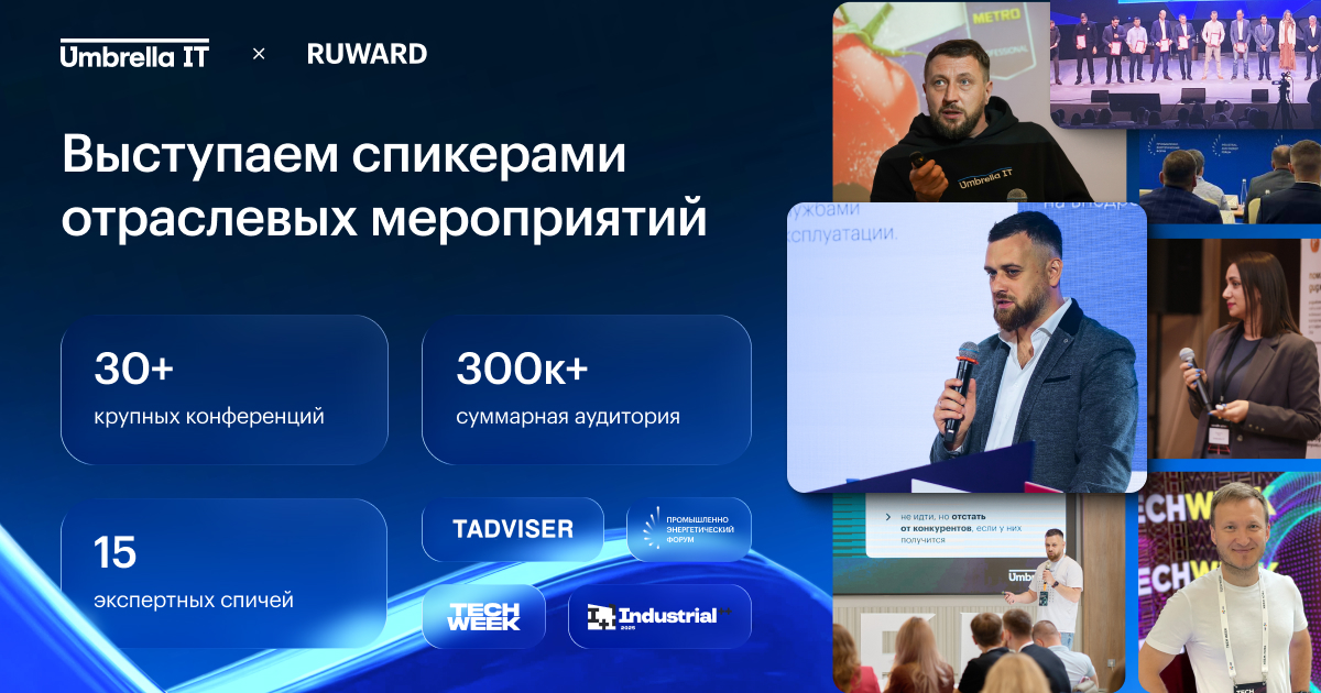 Umbrella IT системно участвует в ключевых отраслевых и технологических площадках, где представляет прикладные кейсы по AI, промышленной цифровизации, продуктовой разработке и внедрению новых технологий в бизнес. За 2024–2025 годы компания выступила на ряде значимых мероприятий и партнерских программ, охватывающих промышленный, финтех- и digital-сегменты.