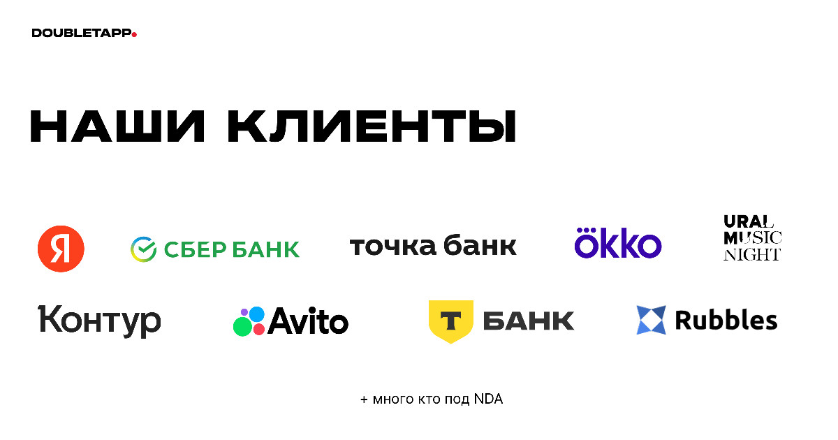 С 2020 года Doubletapp активно развивает направление аутстаффинга, усиливая команды гигантов российского бизнеса — Яндекса, Сбера, Тинькоффа, Банка Точка, Авито и других, а также является партнером в проектах зарубежных бигтехов (NDA).