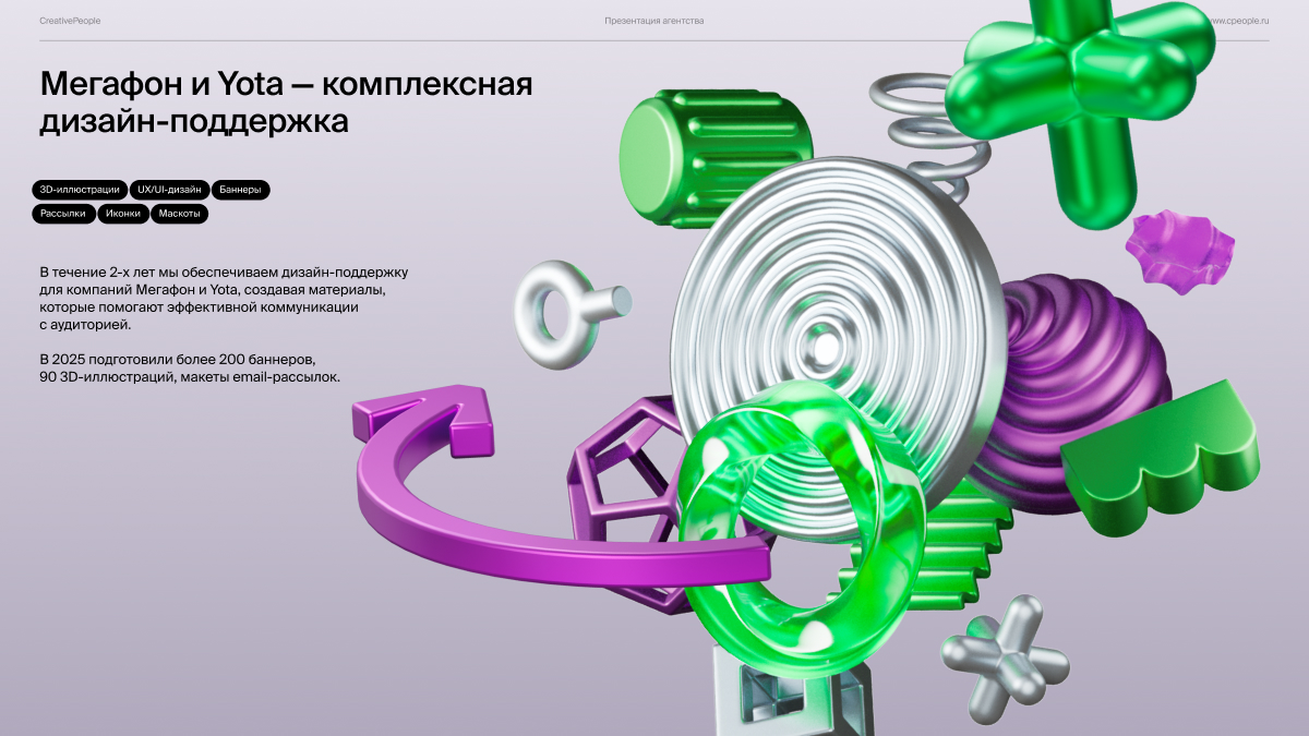 Мы в CreativePeople специализируемся на цифровом дизайне продуктов и коммуникаций для крупных компаний.