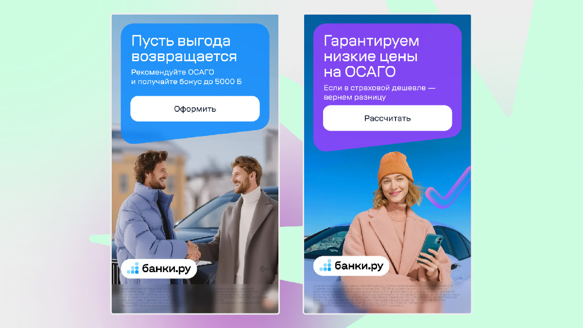 В креативах акцентировались на понятную и прикладную выгоду использования Банки.ру и продвигали: