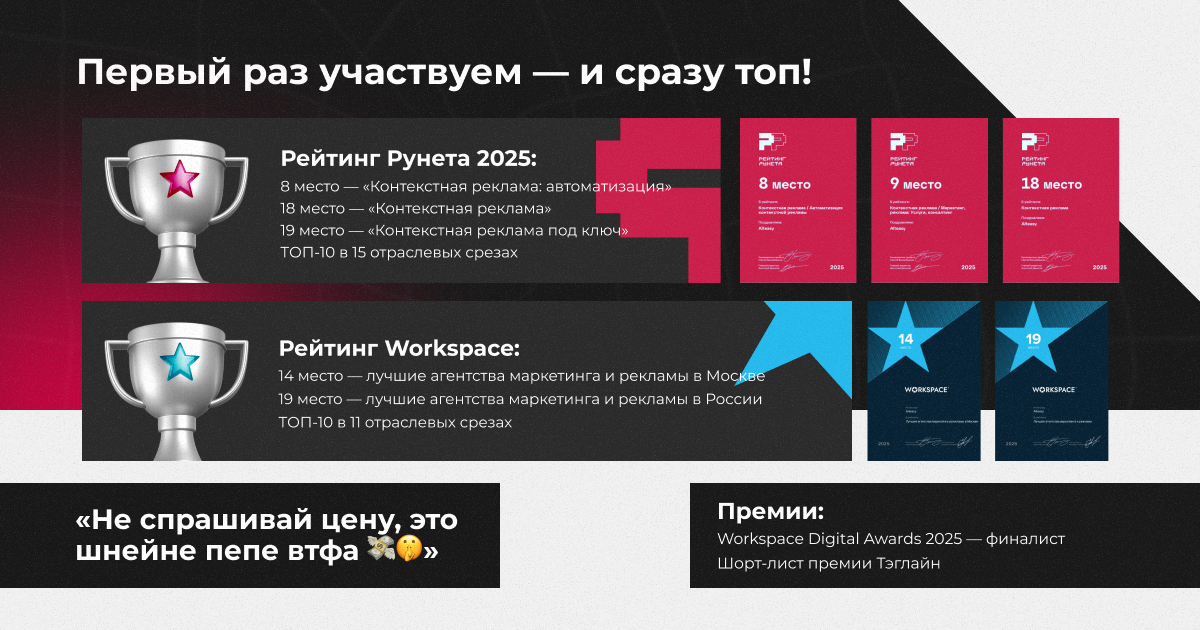 - 19 место “Рейтинг агентств интернет-рекламы и маркетинга 2025”