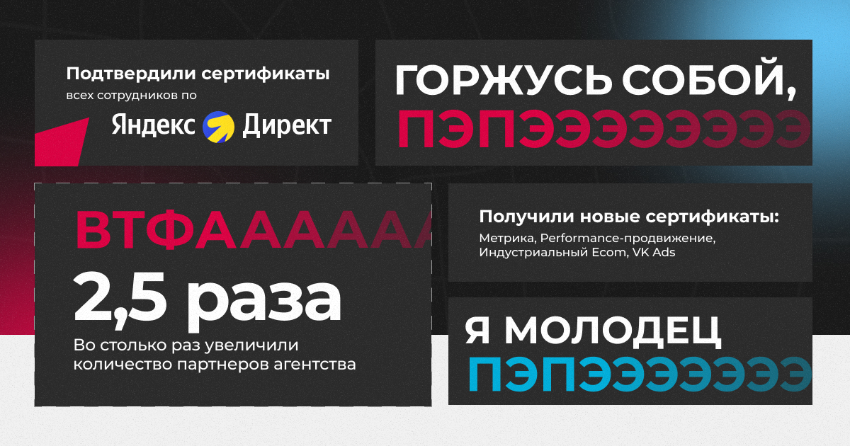 У нас крутая экспертиза, интересные клиенты и кейсы с настоящими цифрами и впечатляющими результатами. Мы очень старались сделать эту заявку максимально полной — и, честно говоря, нам даже понравилось собирать всю эту информацию. Так мы сами поняли, каких высот достигли и чем можем гордиться.