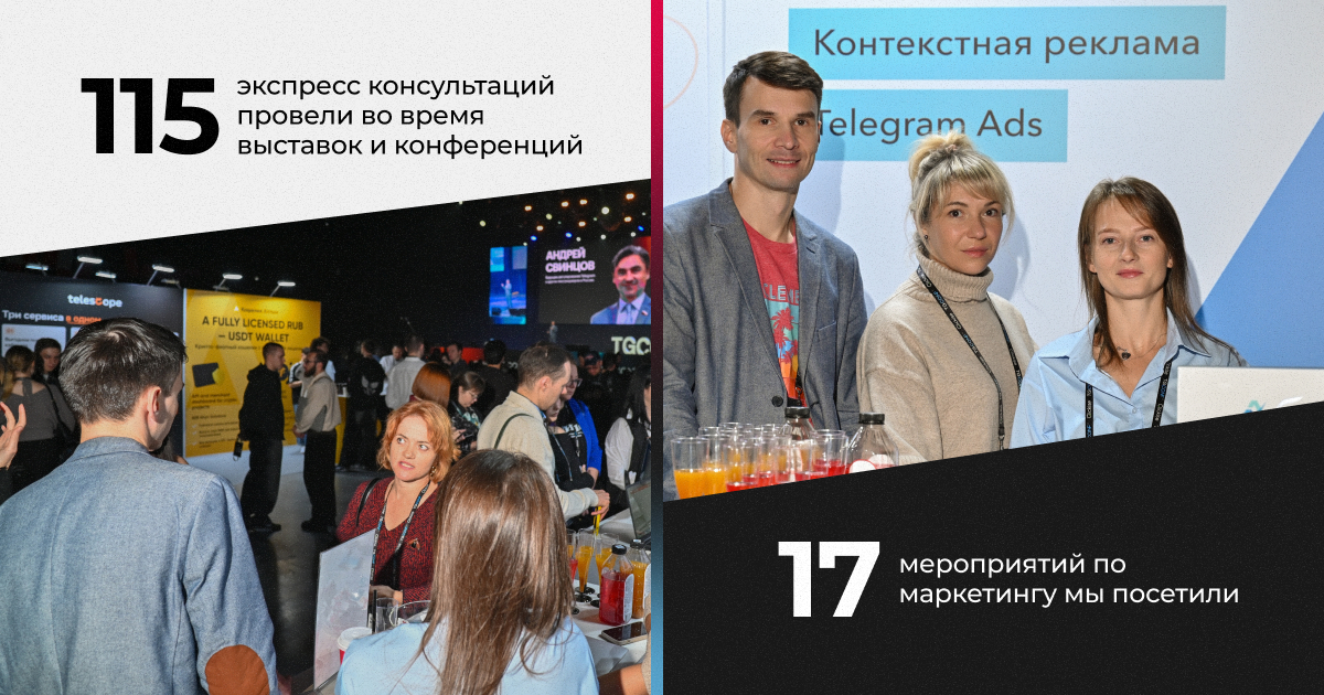 В 2025 мы провели 115 экспресс консультация во время выставок и конференций и посетили 17 мероприятий по маркетингу