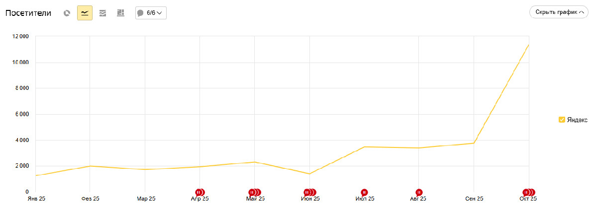 — имел низкую органическую видимость в Яндексе;