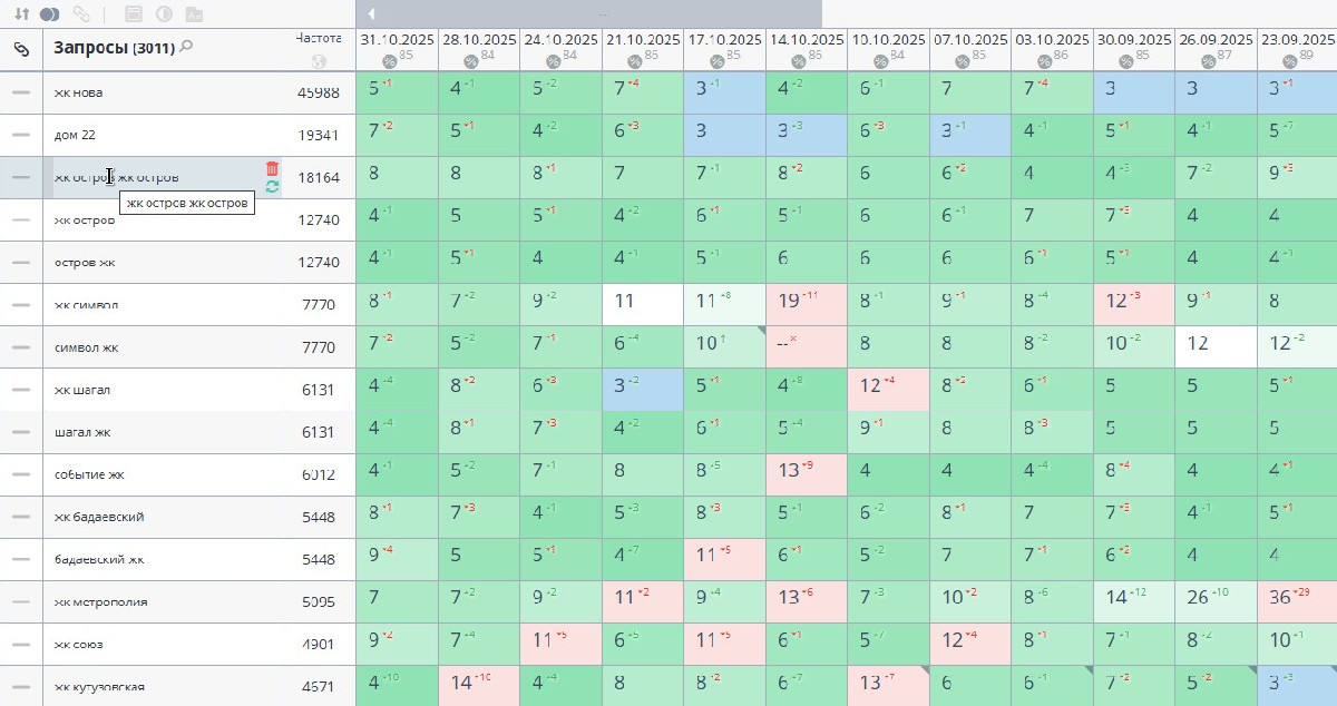 На этом этапе для меня было важно навести порядок. В премиальной недвижимости нельзя просто добавлять страницы и надеяться на рост — без чёткой структуры сайт начинает путаться сам в себе. Запросы пересекаются, страницы конкурируют друг с другом, и вместо движения вперёд получается топтание на месте.