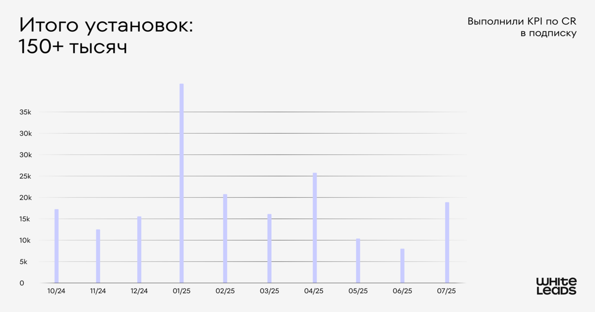 Кампанию начали по модели CPA с оплатой за подписки: на тестовых объёмах удалось достичь целевой стоимости. Однако аналитика показала, что при масштабировании сохранить такой уровень цены невозможно.