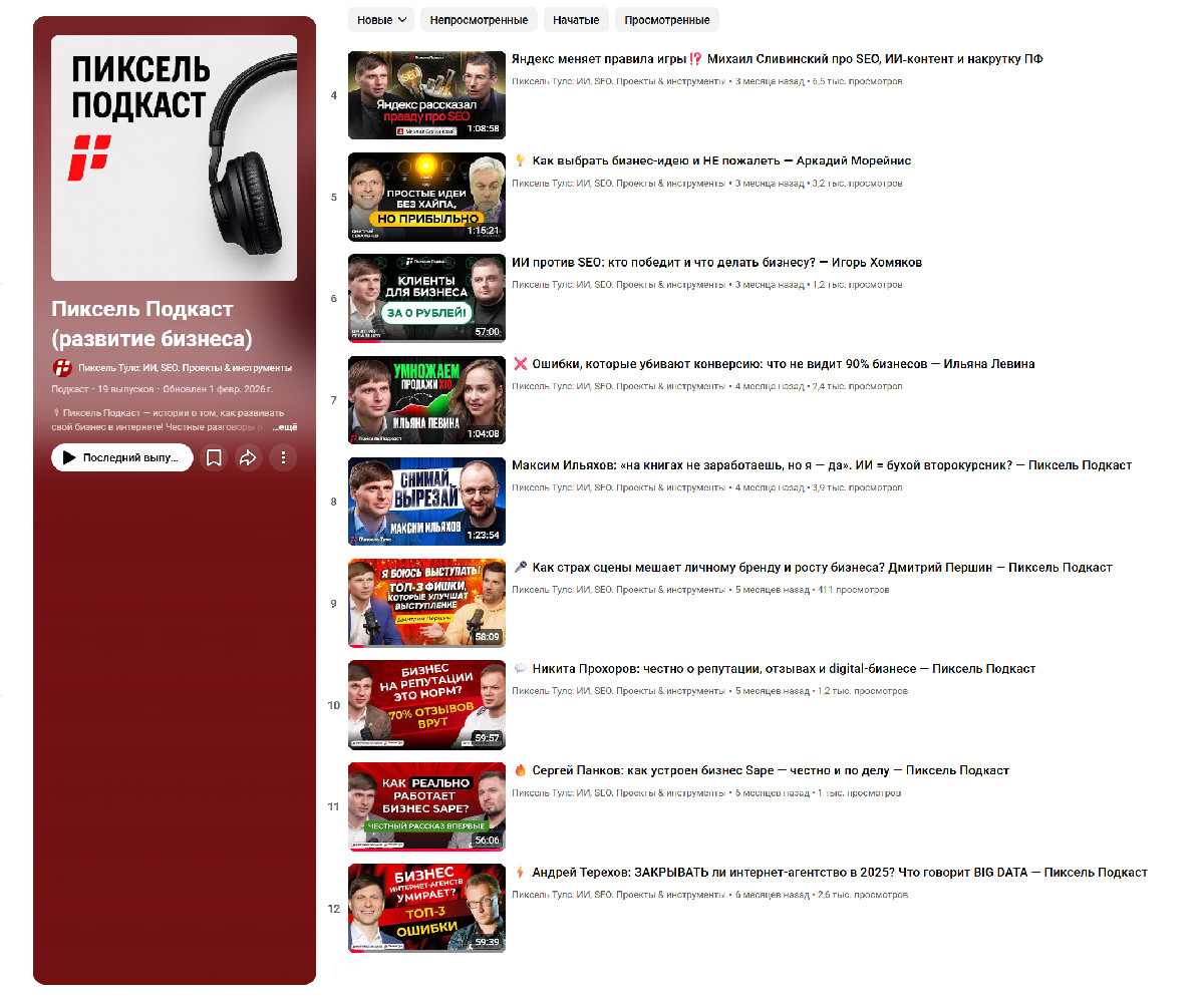 Запуск подкаста о развитии бизнеса в интернете «Пиксель Подкаст» — вышло уже более 20 выпусков;
