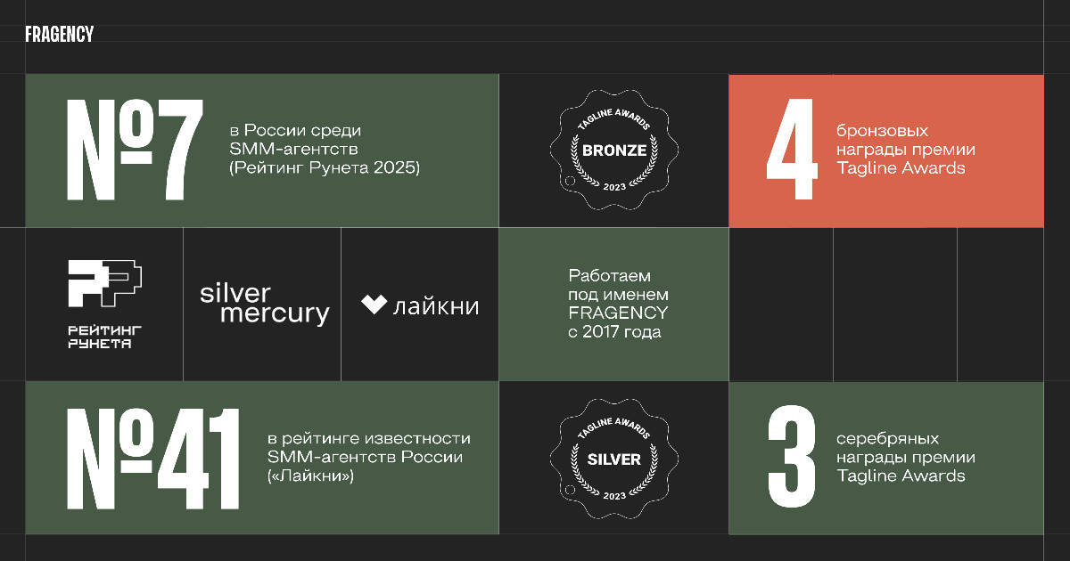 - Входим в топ-7 SMM-агентств России («Рейтинг Рунета» 2025)