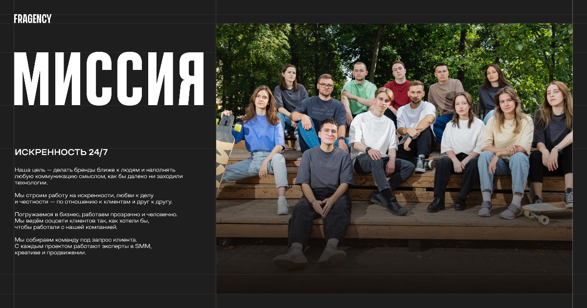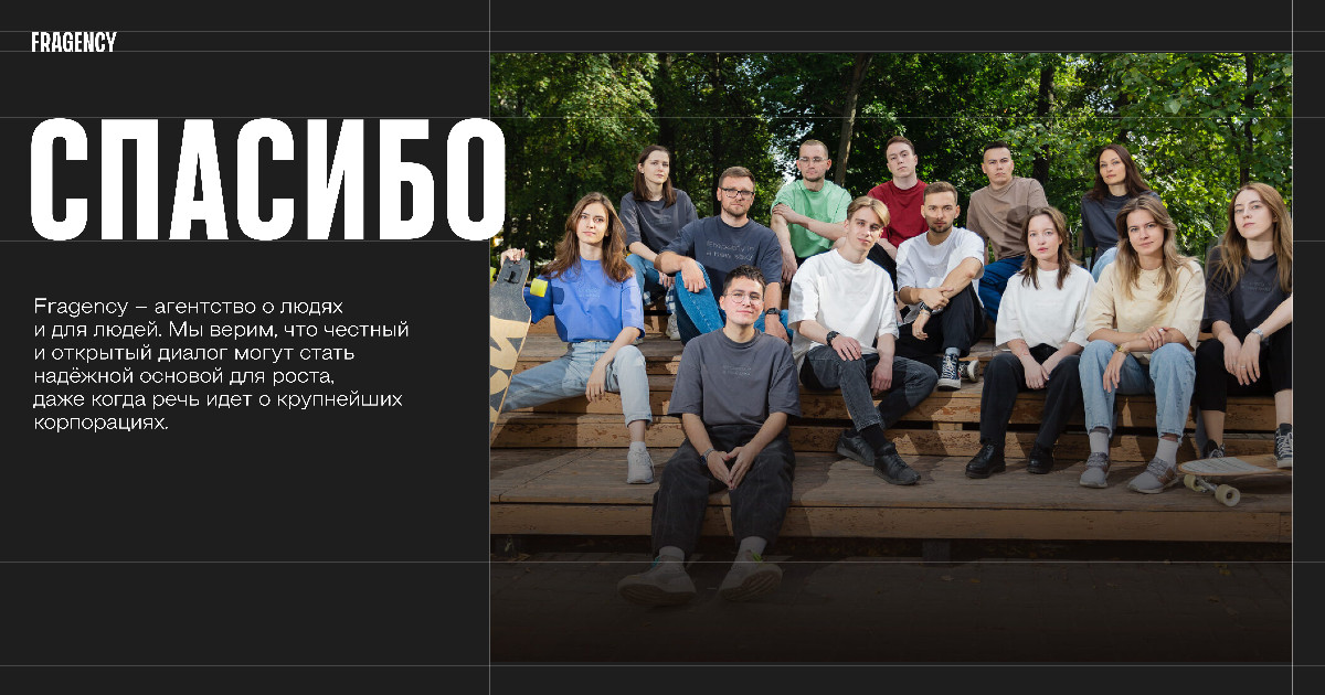 Fragency – агентство о людях и для людей. Мы верим, что честный и открытый диалог могут стать надёжной основой для роста, даже когда речь идет о крупнейших корпорациях.