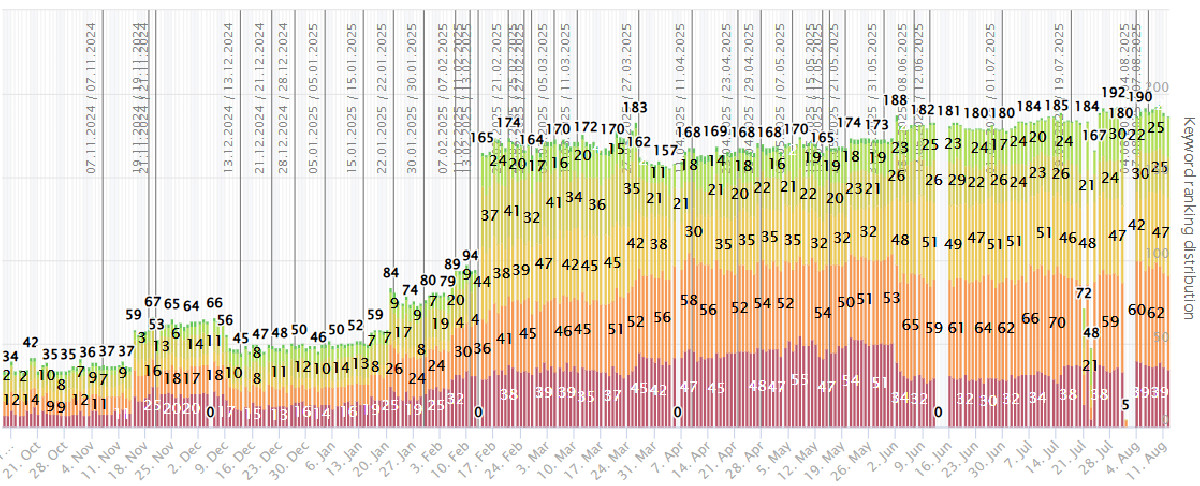 В результате мы добились роста объёма семантического ядра с 60–70 до 180–190 ключей. Приложение стало чаще появляться в поиске и рекомендациях внутри платформы.