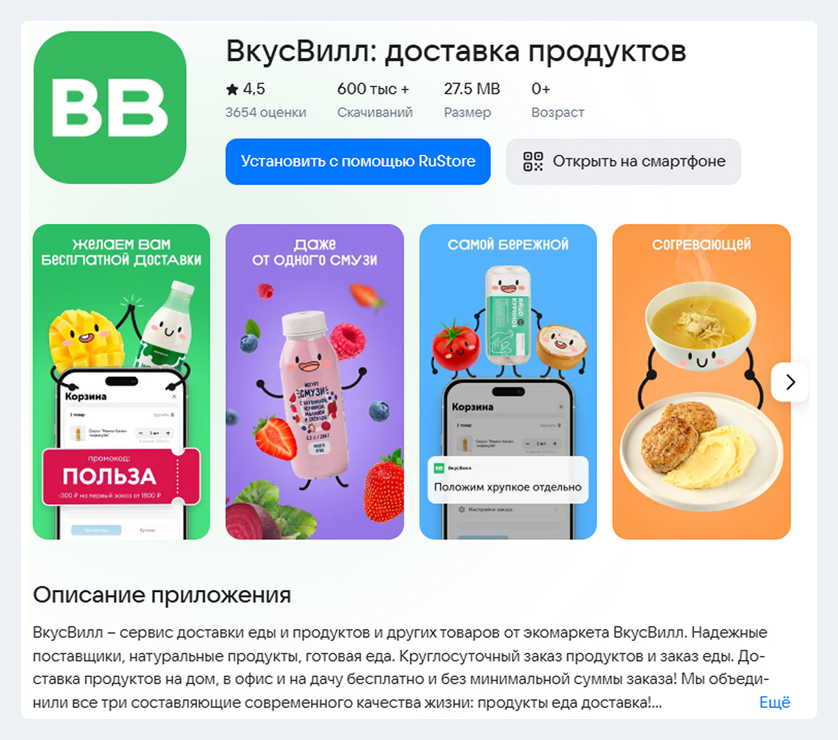 Понять, насколько RuStore может стать важным каналом продвижения для ВкусВилл.