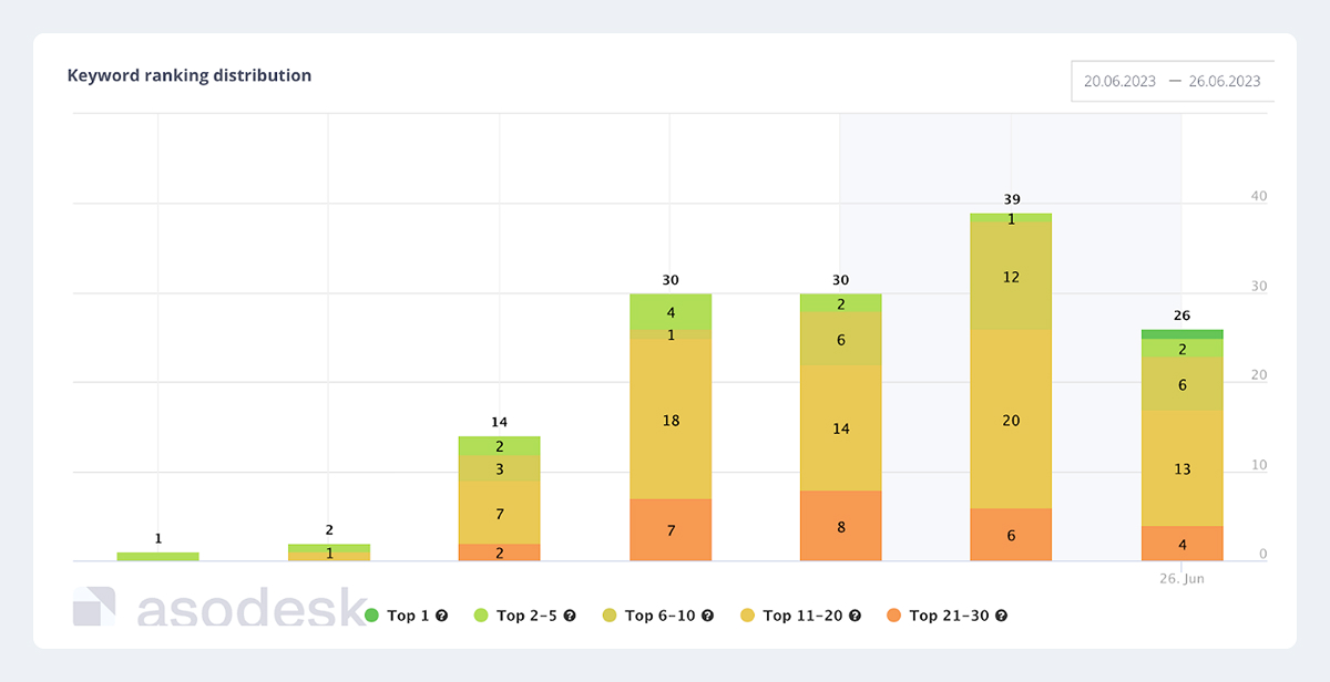 Приложение находилось в статусе новичка: аудитория его не знала, поисковая видимость была ограничена, а конкуренты уже занимали верхние позиции в сторах.