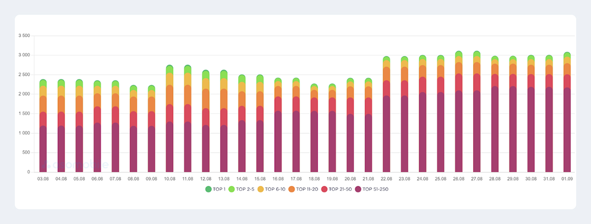 В результате первых двух недель работы объём семантического ядра вырос в 10 раз. Спустя два года сотрудничества:
