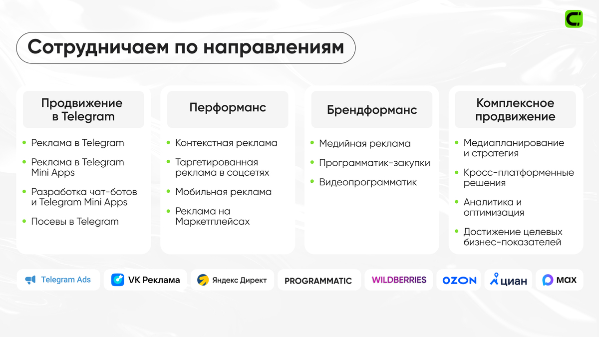 - Комплексные digital-стратегии и медиапланирование