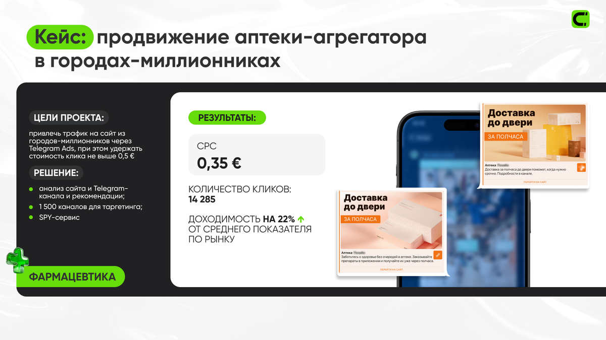 Кампания в Telegram Ads для аптечного агрегатора