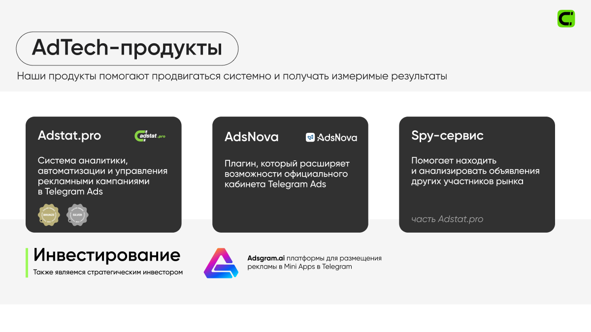 Благодаря этим технологиям агентство помогает брендам эффективно использовать возможности Telegram как рекламной и коммуникационной площадки.